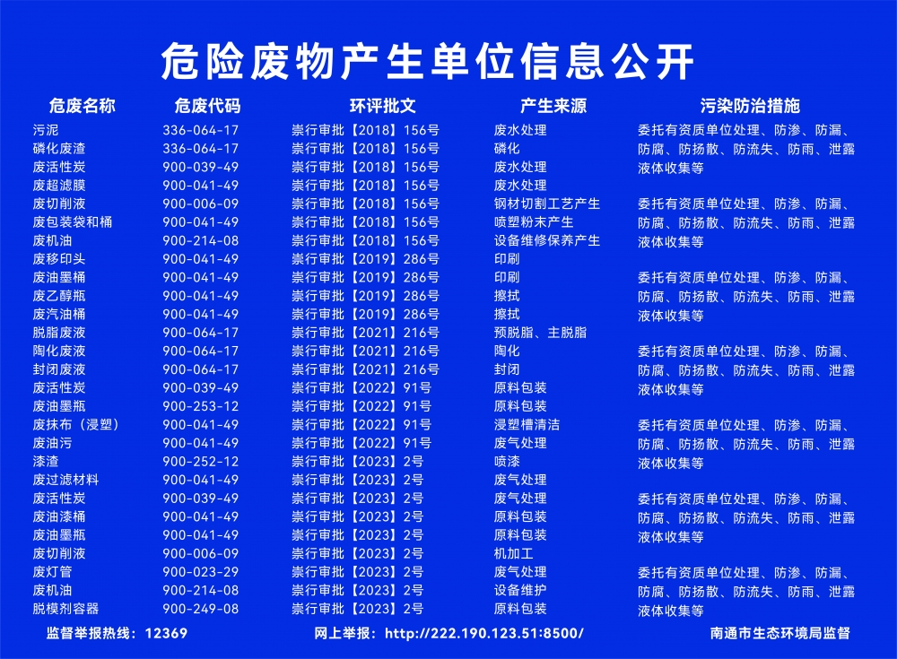 根據《中華人民共和國固體廢物污染環境防治法》有關規定,本著真實、準確、公開、合法的原則,我司將嚴格遵守國家法律法規等相關制度,在危險廢物產生、運輸、處置等方面進行規范化管理,未對周邊環境造成影響。